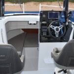 Das Cockpit bietet noch mehr Vorzüge! So ermöglicht ein zusätzlicher Außensteuerstand dem Fahrer nah beim Angelgeschehen zu sein. Ein optionales ausziehbares Dach spendet Schatten. Dabei dienen die seitlichen Streben gleichzeitig als Handläufe, wenn Sie sich über das Gangbord Richtung Vordeck bewegen.