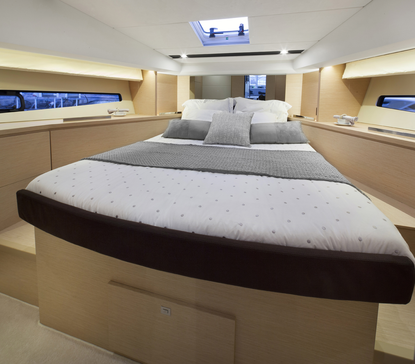 Wie auch die 420S kann die 420Fly mehr als so manche 18-Meter-Yacht. Mit ihrem extra großen Cockpit und zwei absolut voneinander getrennten Schlafkojen auf nur zwölf Metern Länge ist sie konkurrenzlos in ihrer Klasse.